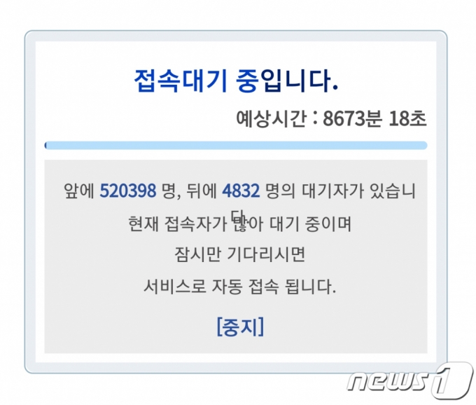 벌써 세번째 '먹통'.만 53~54세 백신 사전예약 개통 후 접속 지연·예상 대기 105시간 통지도 현화영 입력 2021.